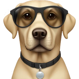 dark brown labrador, smiling, with glasses, and a SAM chain emoji