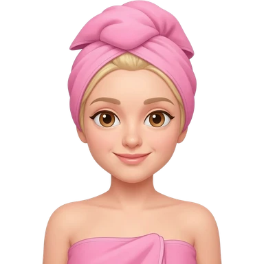 Blonde girl with pink face mask in a pink towel with dark brown hair emoji