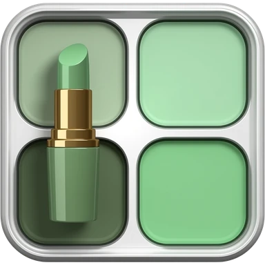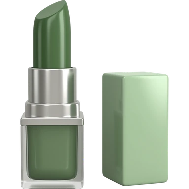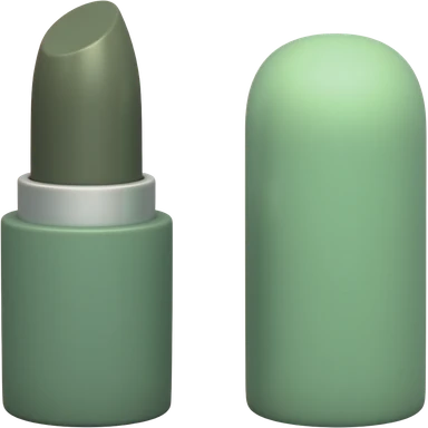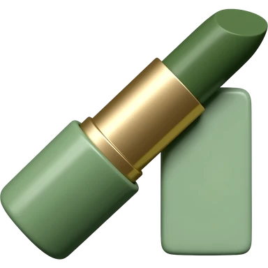 lipstick, beauty symbol, smooth rounded shape, minimal luxury cosmetic palette with dark olive green, soft sage green, emoji