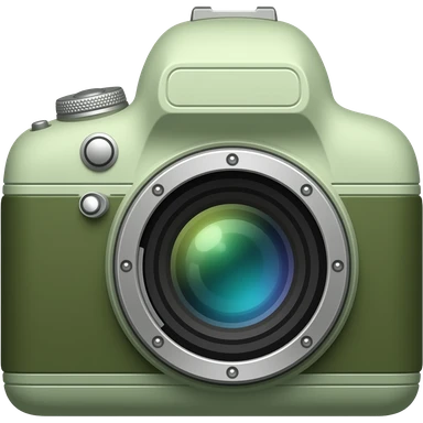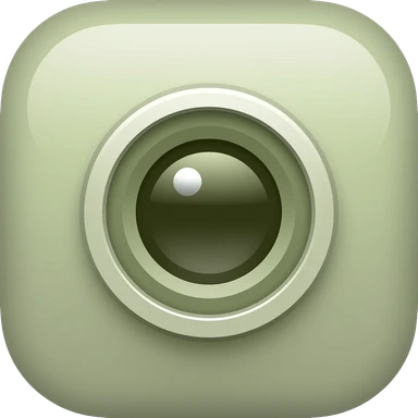 minimal camera icon, soft rounded design, modern and clean, muted earthy palette with dark olive green, soft sage green, emoji