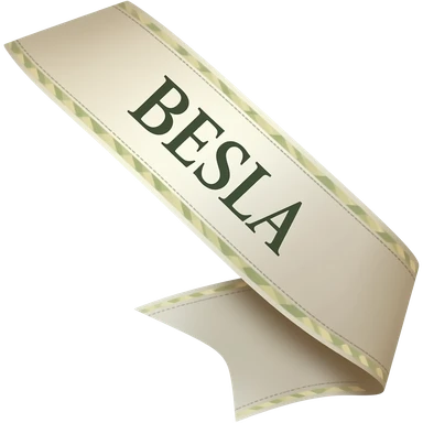 beauty pageant sash, soft fabric, slightly curved, muted earthy palette with dark olive green, soft sage green, warm beige and creamy tones emoji