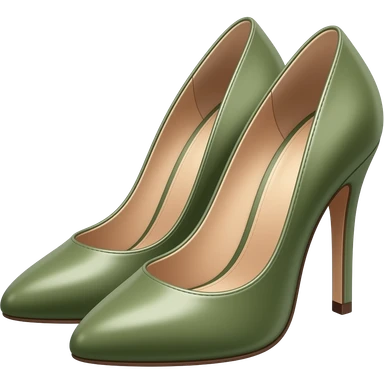 pair of stylish high heels, feminine, elegant curves, fashion icon, muted earthy palette with dark olive green, soft sage green, warm beige and creamy tones emoji