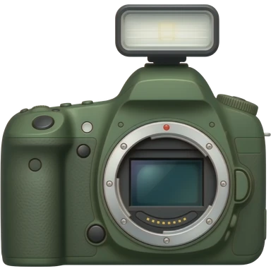 dark olive green Canon camera with Flash spotlight emoji
