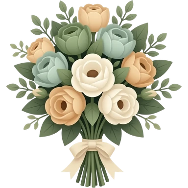 elegant bouquet of flowers, soft rounded shapes, muted earthy palette with dark olive green, soft sage green, warm beige and creamy tones emoji
