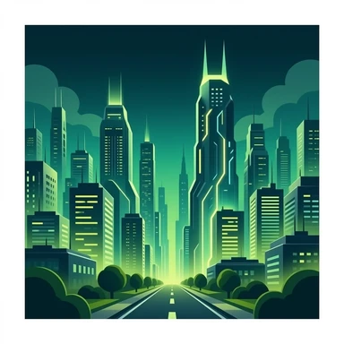 Futuristic cityscape at night with neon lights, dynamic composition, cinematic style, high-tech and energetic, perfect for announcement or news post, detailed and sharp with dark olive green, soft sage green, emoji