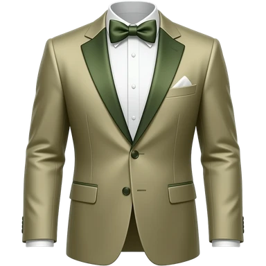 tuxedo jacket with bow tie, masculine, clean structure, elegant, muted earthy palette with dark olive green, soft sage green, warm beige and creamy tones emoji