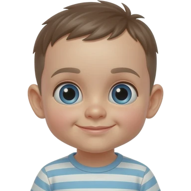 Cute Cupid character head with a large forehead, big bright blue eyes, and short, voluminous curly golden blond hair. A green leafy branch crown sits on the head. Stylized, colorful, cartoon look focused on innocence and cuteness. emoji
