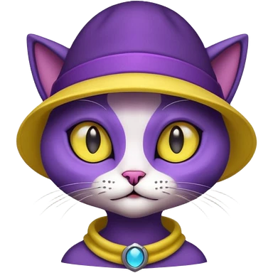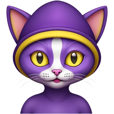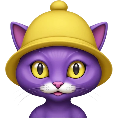 dark purple alien cat with no fur and yellow hat and green eyes emoji | AI Emoji Generator