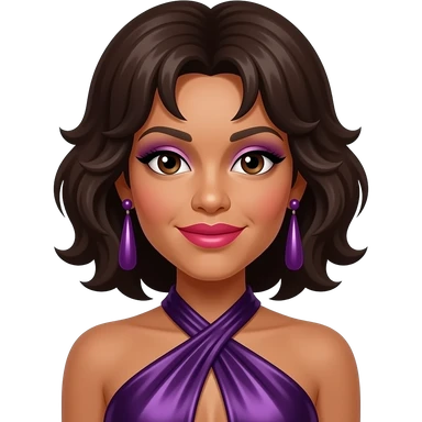 Posh Spice from Spice Girls with brown eyes, dark brown hair, dark purple metallic sweetheart dress emoji
