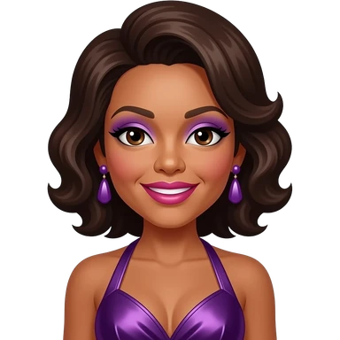 Whitney Houston with dark brown hair, dark purple metallic dress, silver earrings emoji