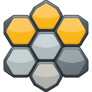 dark purple hexagon with a line going out from each corner, surrounding it on each side with a bit of space between them are elongated hexagons that surround the middle one to make a circular shape. the outside hexagons alternate between dark purple and light purple.emoji
