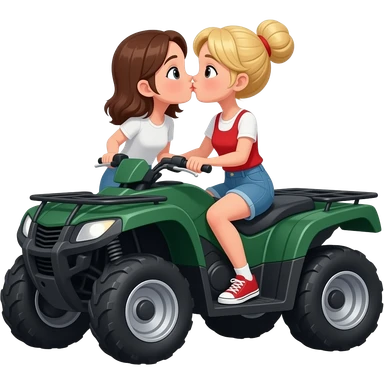 Dark green atv with 2 girls kissing one with brown hair and one with blonde hair in a high bun emoji