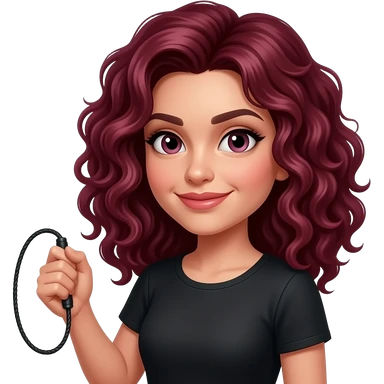 Dark red hair curly with a whip emoji
