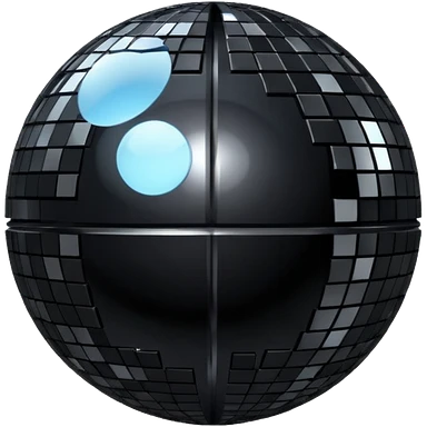 A glittering silver disco ball with detailed mirrored panels reflecting rainbow colours. Add beams of light radiating outward against a dark background. emoji