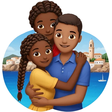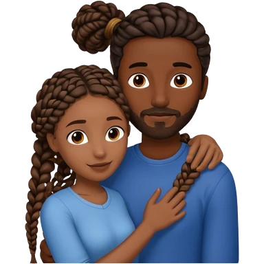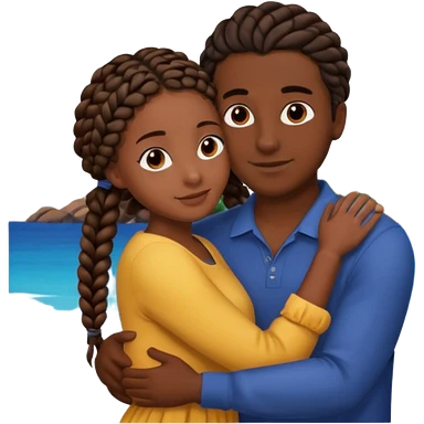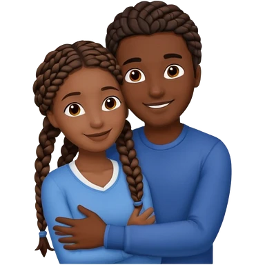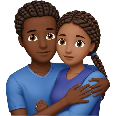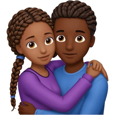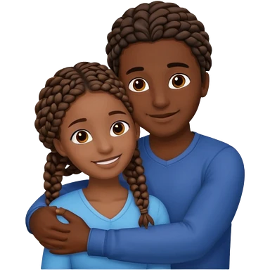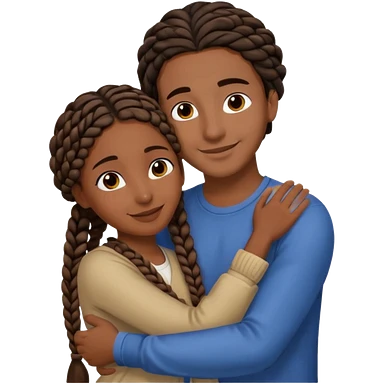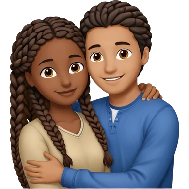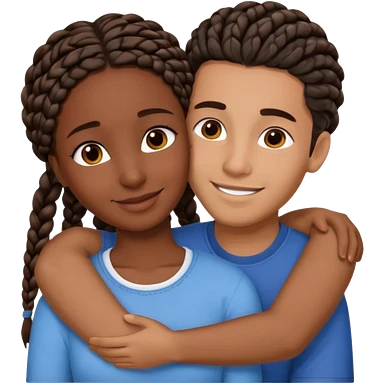 dark skin, black girl with black braids, hugging her middle eastern boyfriend with straight parted brown hair and light skin emoji | AI Emoji Generator