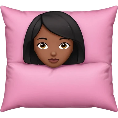 Dark skin Black woman with short black bob hair, pink pajamas laying on pillow just me emoji | AI Emoji Generator
