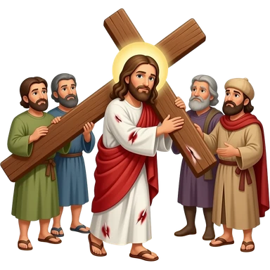 Jesus injured and being mocked while carrying a cross to Calvary emoji