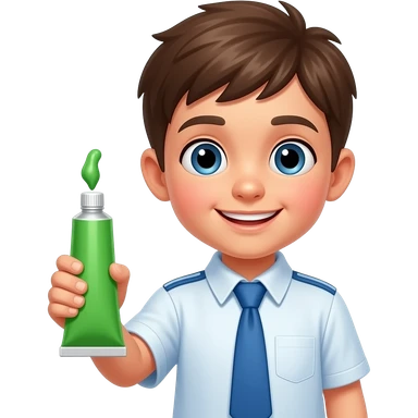 student boy in school uniform and hold vibrant green close book in front of their chest emoji