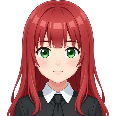 anime girl head bowed long red hair green eyes black blouse with white collar emoji