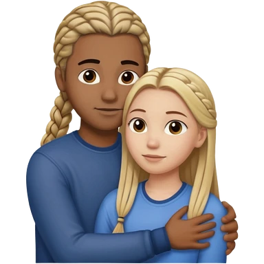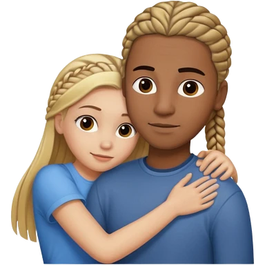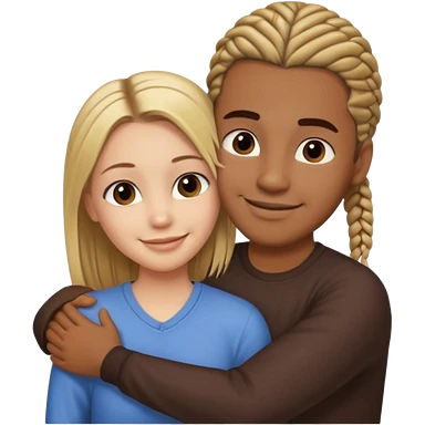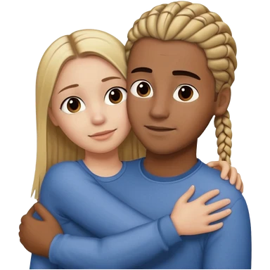 dirty blonde girl with straight hair and medium toned guy with dark brown cornrows hair hugging emoji