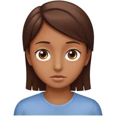 Dark tanned skin girl with very dark brown very long curly hair, very dark Asian eyes, white dress at neckline emoji