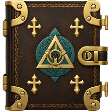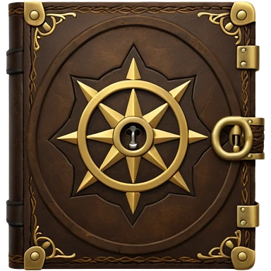 Ancient spellbook with metal lock and sigil, dark fantasy emoji