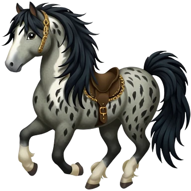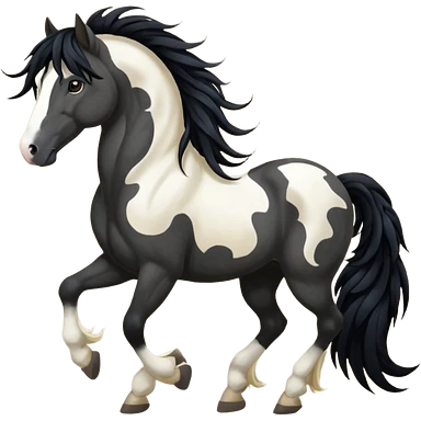 Dark bay gypsy cob with black feathers and mane emoji