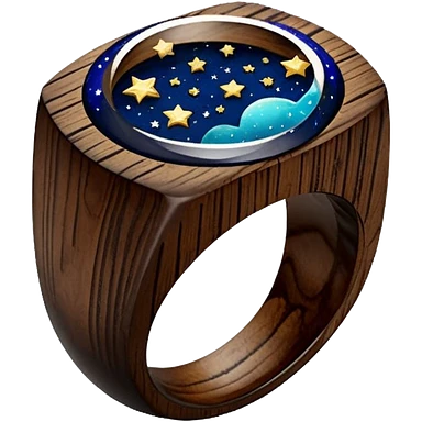 dark wood ring with epoxy resin in space and stars motifs crystal emoji