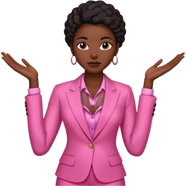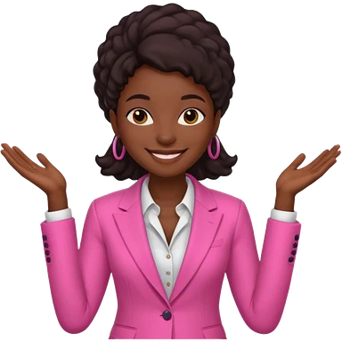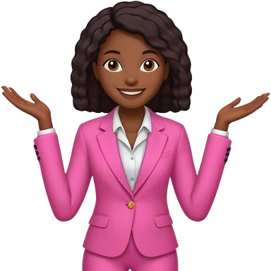 Darkskin black woman wearing a pink suit with a silk press emoji | AI Emoji Generator