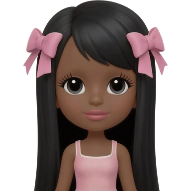 darkskin doll with pink bows and black straight hair and a cropped bandu top and dark brown eyes emoji | AI Emoji Generator