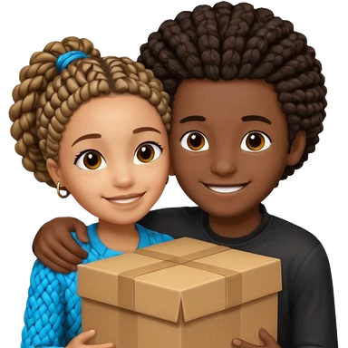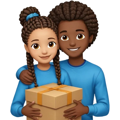 A lightskin with afro boy and dark skin girl with box braids hug emoji