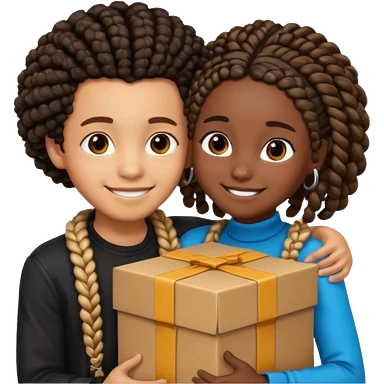darkskin girl with box braids kissing light skin boy with curly hair emoji | AI Emoji Generator