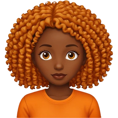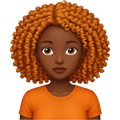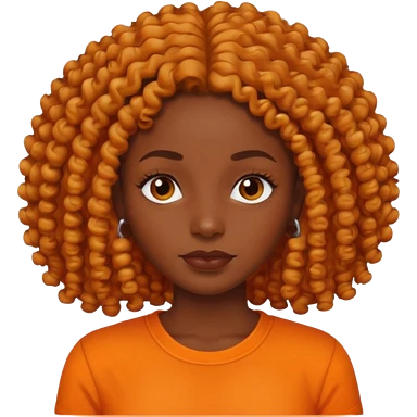 dark skin woman with organge shirt and curly hair emoji