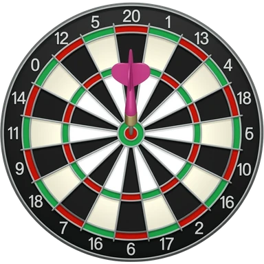 dartboard with one pink dart hitting a bullseye and several other black darts missing emoji