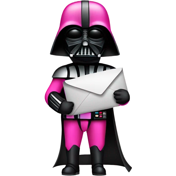 darth vader in all pink suit and pink helmet holding email envelope with one hand emoji | AI Emoji Generator