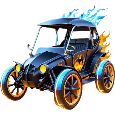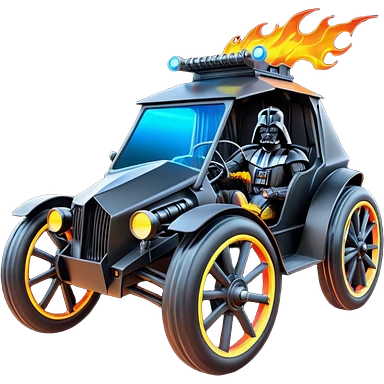 Mad max survival apocalypse ghostly Darth Vader’s Batman-armored 1886 black graphite colored school buggy with horizontal holographic flames painted on the side and neon under glow emoji