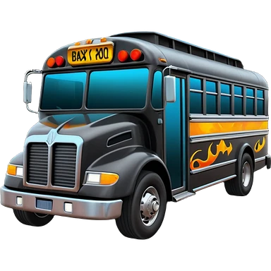 Darth Vader’s armored 1936 school bus with holographic horizontal flames emoji