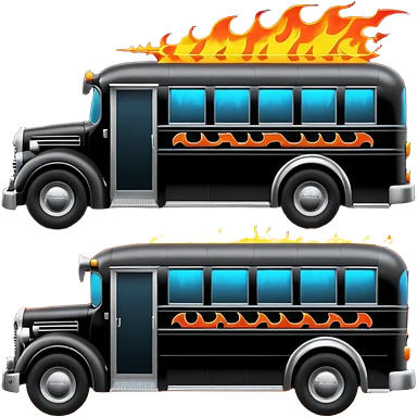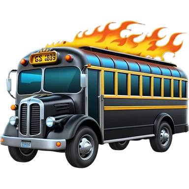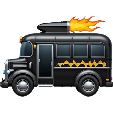 Darth Vader’s armored 1936 graphite colored school bus with holographic horizontal flames emoji