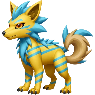Cyan manectric-Electrike-Zeraora-fusion with neon-green stripes and orange eyes (full body) emoji