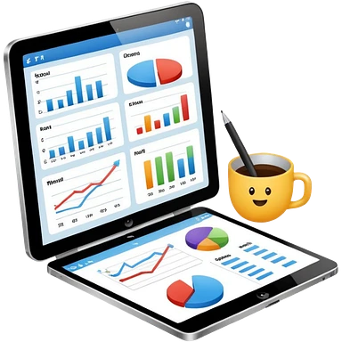 Emoji of an analyst: wearing glasses, focused expression, holding a graph, chart, or laptop, symbolizing data analysis and insights. emoji