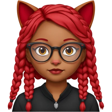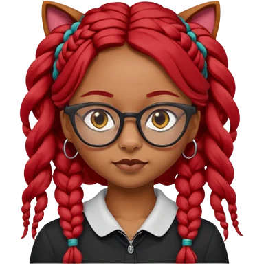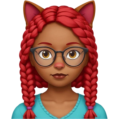 Dark Tan girl with long red plaits and red trimmed cat eye glasses head neck and shoulder shot only emoji