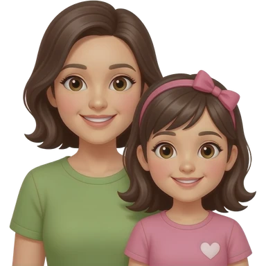 A mom and daughter smiling next to each other, mom is a brunette and daughter is a blonde emoji