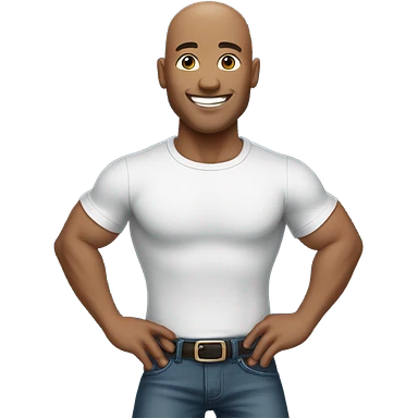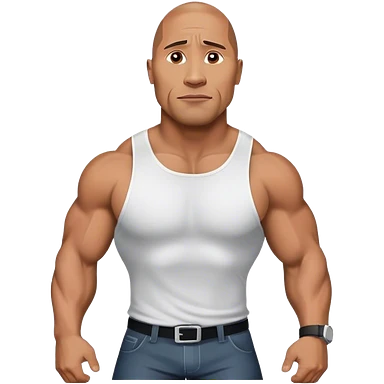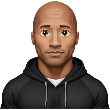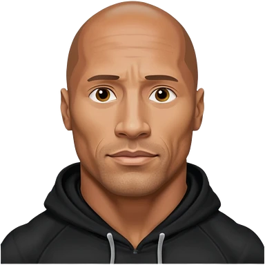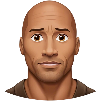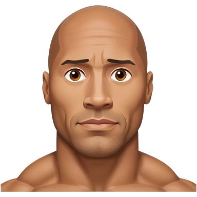 Dwayne Johnson emoji, apple style, muscular face, bald, signature eyebrow raise emoji