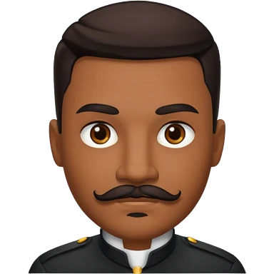 someone with brown hunter eyes, black slicked back hair , great jawline , and a mustache + goatee combo emoji