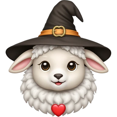 Lamb wearing witch’s hat. Lamb has heart eyes. emoji