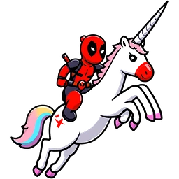 Deadpool chilling on a unicorn floatie emoji