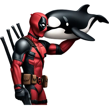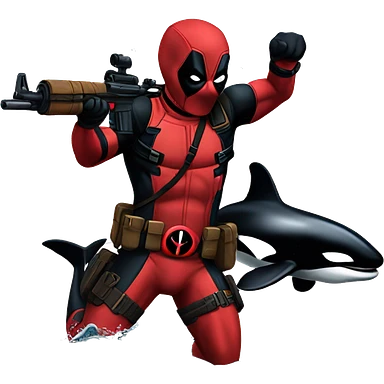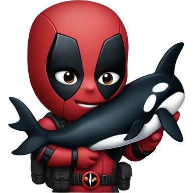 Deadpool holding a baby orca emoji | AI Emoji Generator