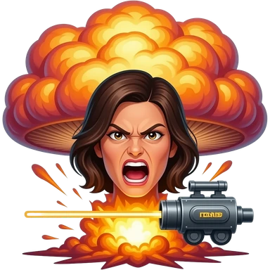 furious female face, Death Star laser cannon beam, giant explosion mushroom cloud, neon glow, dramatic lighting, emoji style, vibrant colors emoji