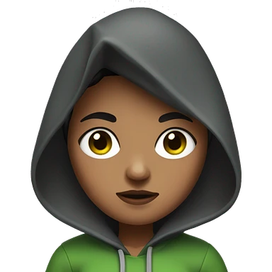 Black hair woman with deathstare and brown eyes with a little green inside, with a red hoodie and gray sportpants emoji