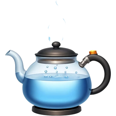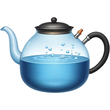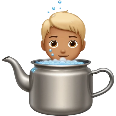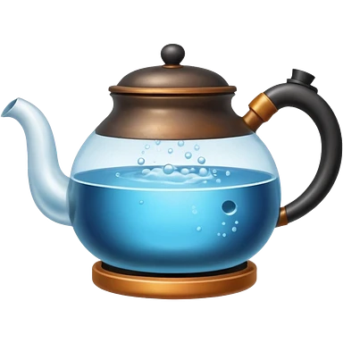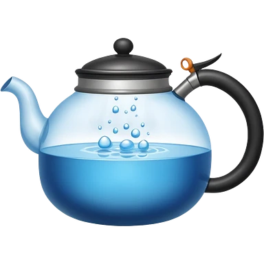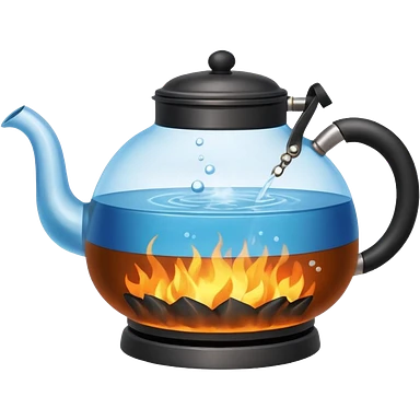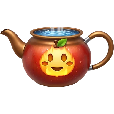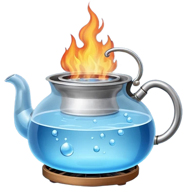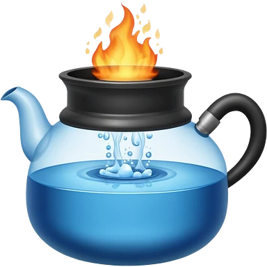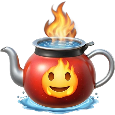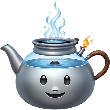 Ultra detailed 3D Apple-style emoji of a small pot or kettle filled with water placed on fire, the water is boiling intensely with visible steam and bubbles rising, bright lighting, clean white background, high-quality realistic emoji rendering. emoji